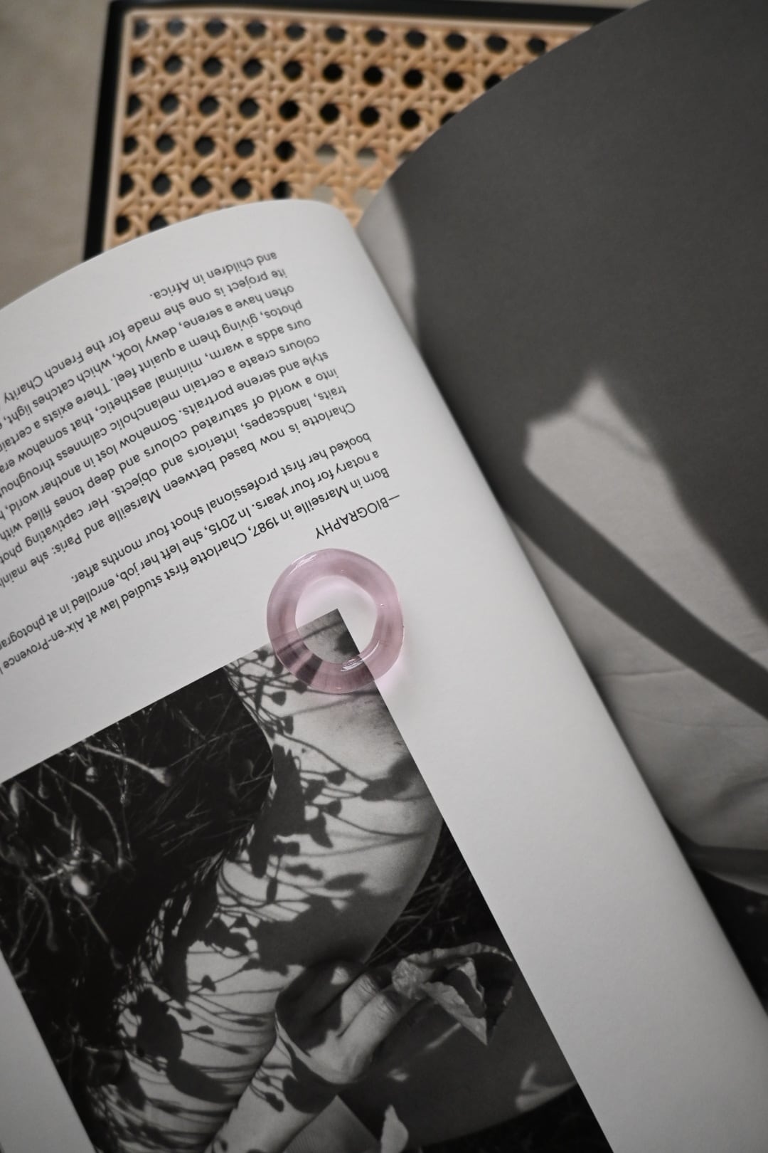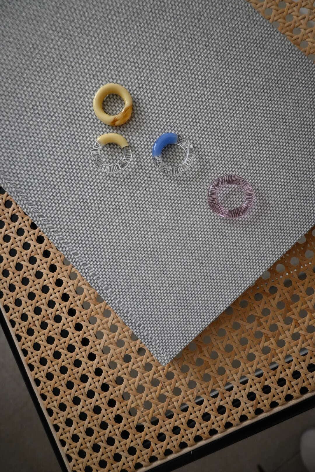 半透明のピンクのガラスリングです