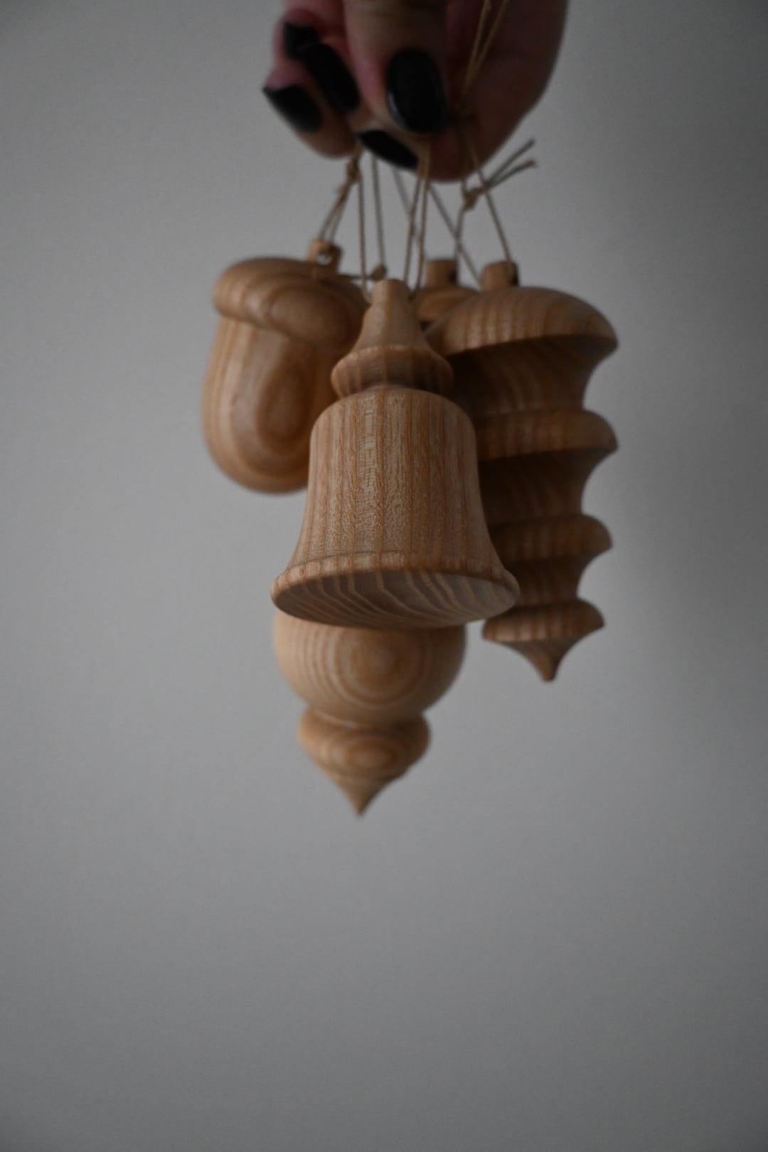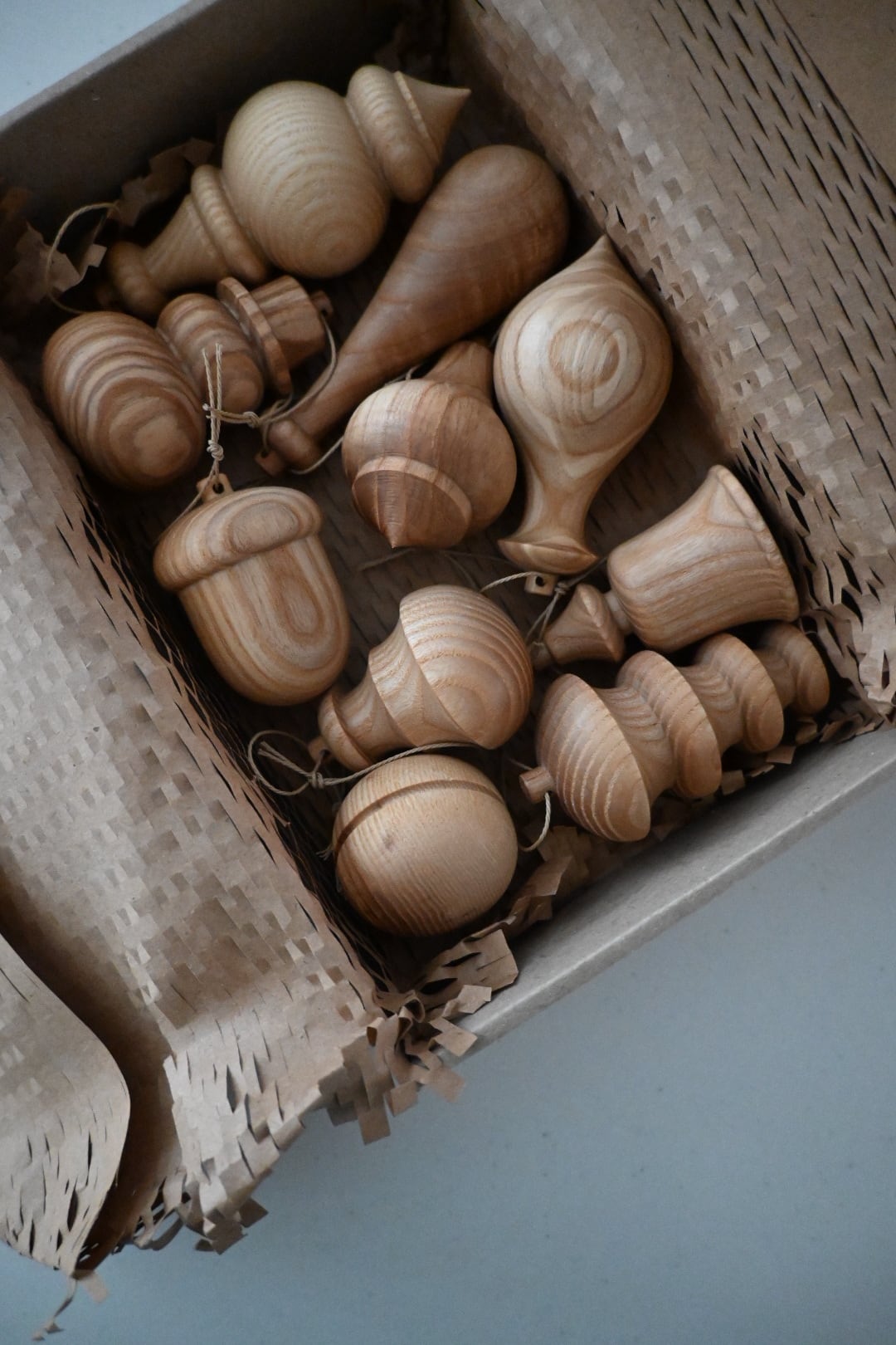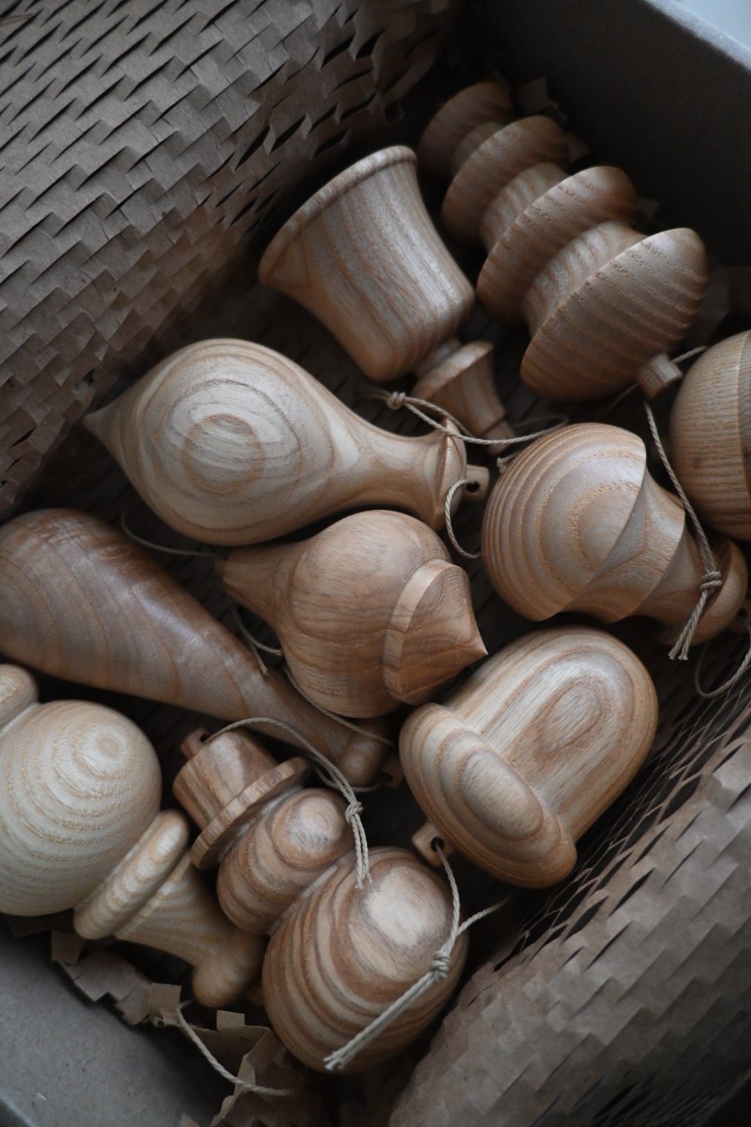 ◎size 約5〜9cm ◎material 木材 ◎10個set ウクライナの職人によるハンドメイドで ひとつひとつ丁寧に作られた木製オーナメント ひとつとして同じものはない 自然で温かみのある木目も魅力です。