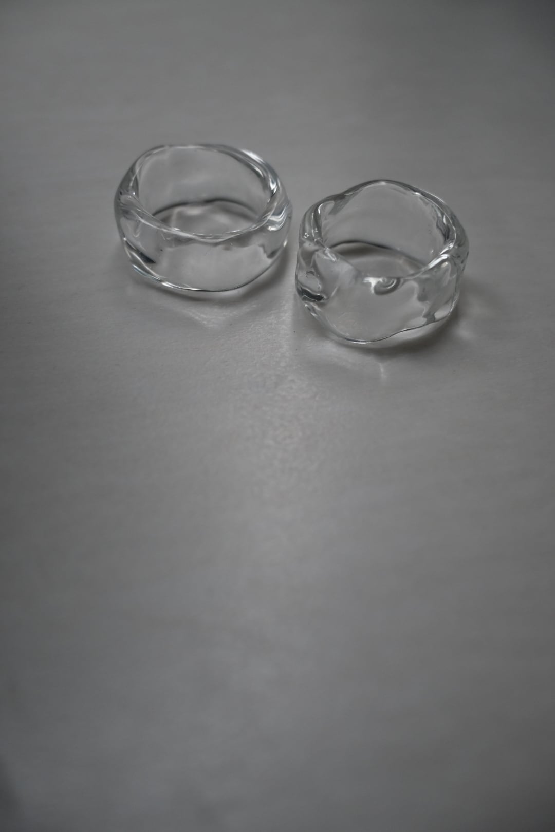 他のガラスリングと比べて平ためなので